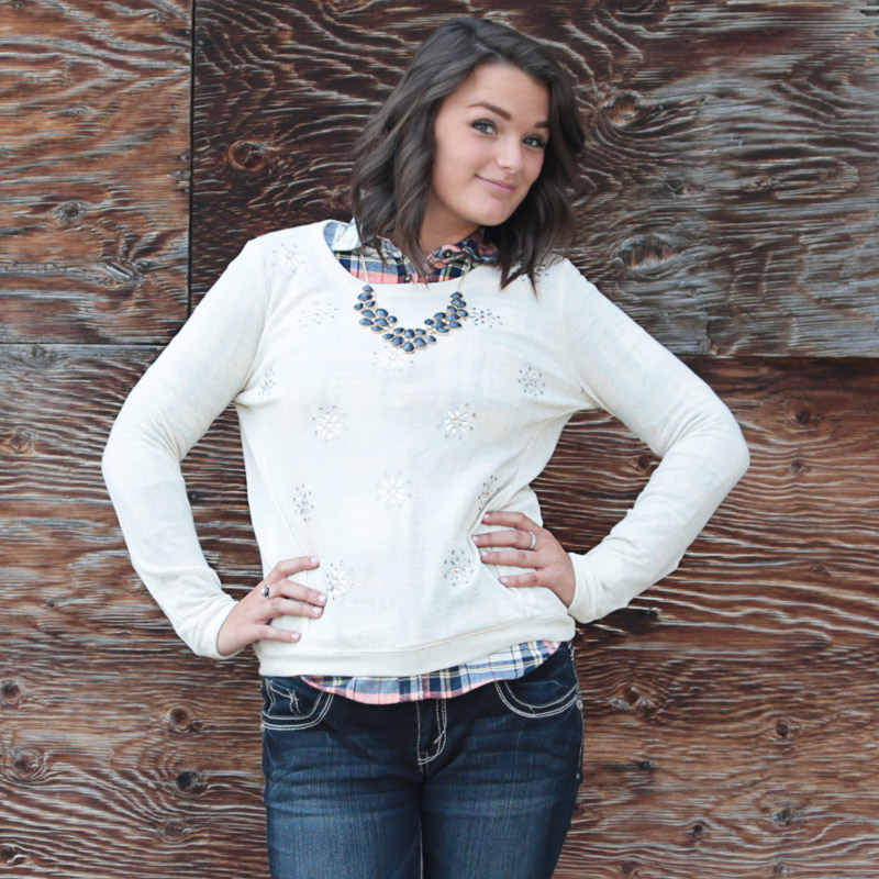 Instead of going fancy underneath and casual on top, switch it up a bit! Who says you can't wear a sparkly sweater with a plaid button up underneath? Certainly not us! We're actually promoting it!
